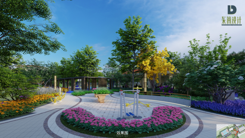 尊重自然規(guī)律,因地制宜,適地適樹(shù)。本項(xiàng)目注重原色的提煉:從山水中提取園路的曲線形式;從田園中提取園建的細(xì)節(jié)元素;從建筑中提取硬質(zhì)元素色彩。