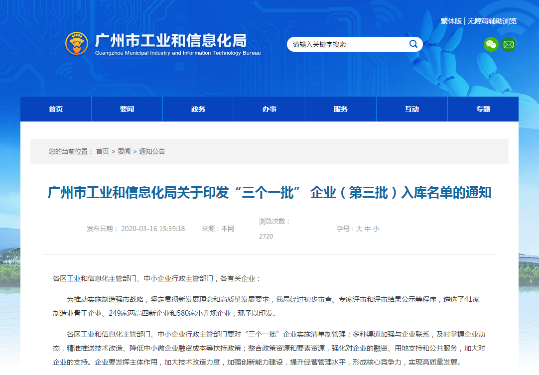 為推動(dòng)實(shí)施制造強(qiáng)市戰(zhàn)略,堅(jiān)定貫徹新發(fā)展理念和高質(zhì)量發(fā)展要求,經(jīng)廣州市工業(yè)和信息化局審查、專家評(píng)審和評(píng)審結(jié)果公示等多項(xiàng)程序,全市249家企業(yè)作為“兩高四新”企業(yè)成功入庫(kù)“三個(gè)一批”企業(yè)名錄。東籬環(huán)境繼經(jīng)廣東省工業(yè)和信息化廳“高成長(zhǎng)中小企業(yè)”認(rèn)定后,再一次受到政府關(guān)注及認(rèn)可,榮登“三個(gè)一批”“兩高四新”企業(yè)名錄。