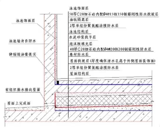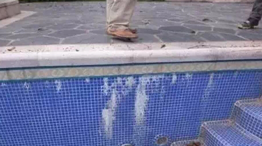 (2)游泳池壓頂施工不符合要求,產(chǎn)生泛堿現(xiàn)象。