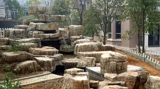 山石材料,其用途及用法各不相同,有斧劈石、雪化石、千層石、五彩石、英德石、蘆管