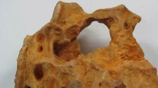 雞骨石:乳黃或灰黃,表面皴紋復(fù)雜,皴裂很渾,常常透空,有似雞骨狀。吸水性能一般,透漏的