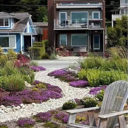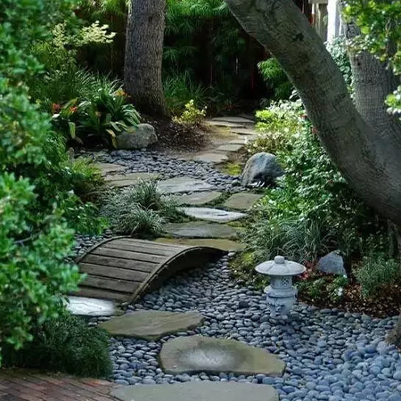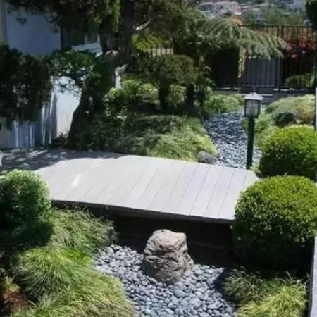 本叫枯山水,有禪意,節(jié)水,低維護(hù),方便介入。有時(shí),旱溪也可以做河底,甚至
