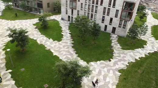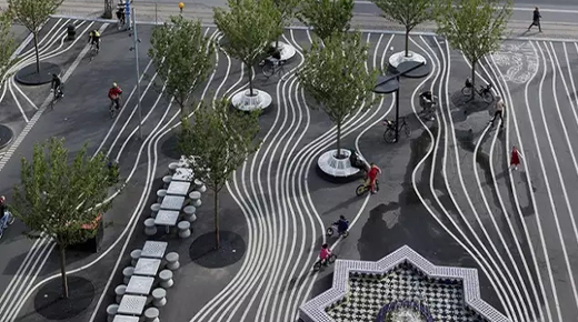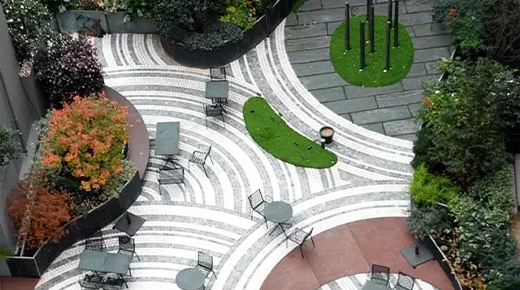 在萬千城市景觀元素里,鋪裝占據(jù)這整個景觀的大筆江山。它不僅具有組織交通和引導(dǎo)游覽的功能,