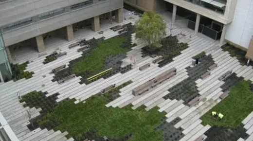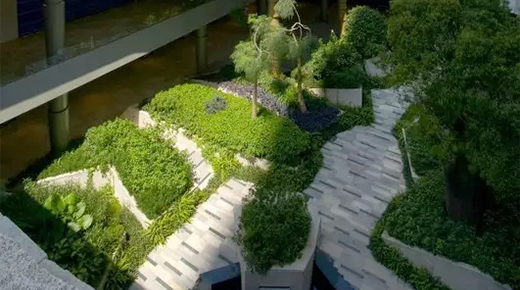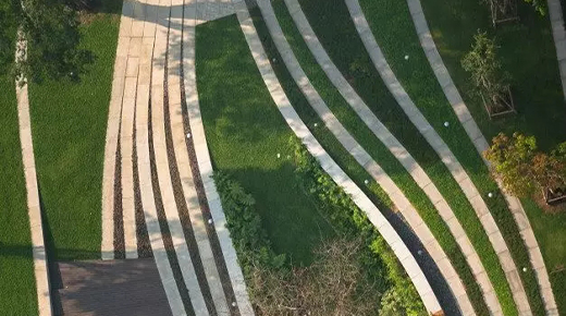還對空間進行了二次分割,為人們提供著良好的休息、活動場地;同時創(chuàng)造出優(yōu)美的地面景觀,增強景