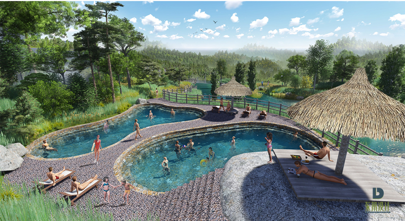 項目充分利用區(qū)域良好地形環(huán)境,打造生態(tài)、天然泳池效果,結(jié)合現(xiàn)有山石設(shè)計休閑平添,泳池臨山石而建,利用山石堆砌泳池池壁,為游客提供一處休閑、玩水好去處。