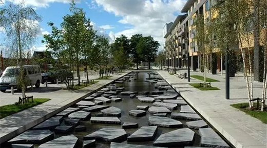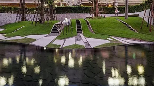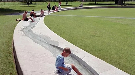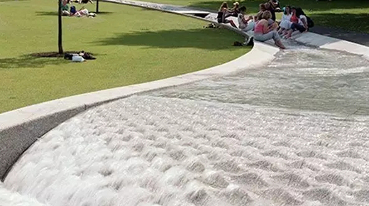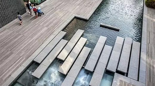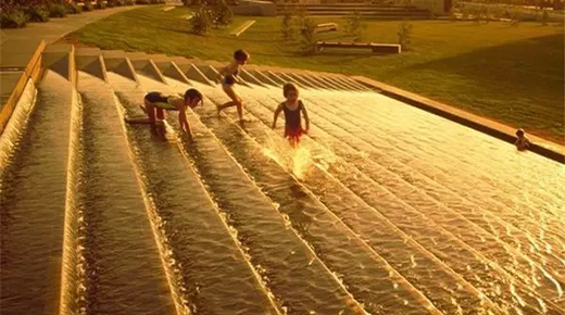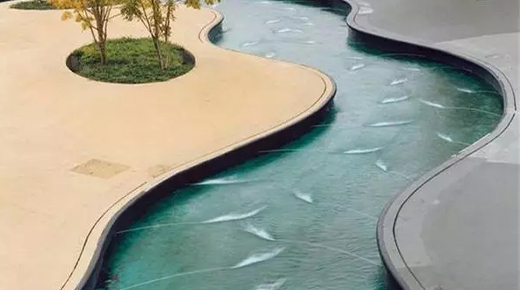 在戶外公共空間的景觀設計中,“水”這個元素絕對是不可或缺的,水的形態(tài)不同,構成的景觀